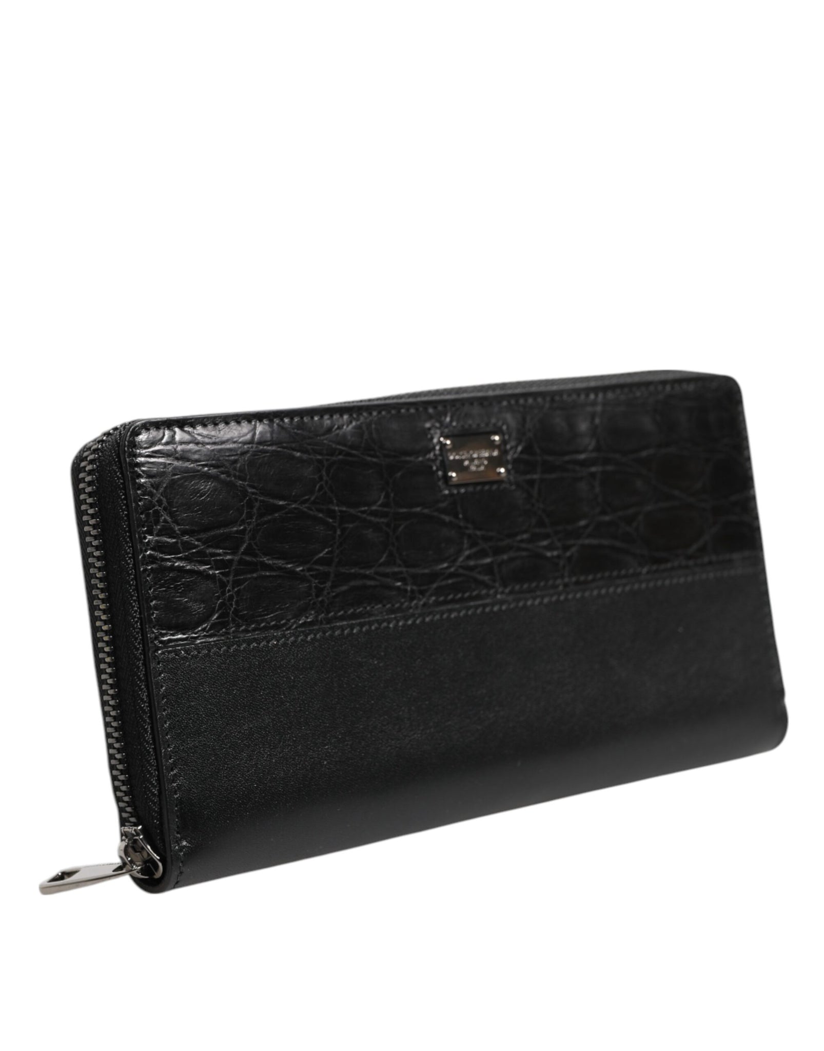 Black Leather Logo Plaque Zip Around Continental Wallet