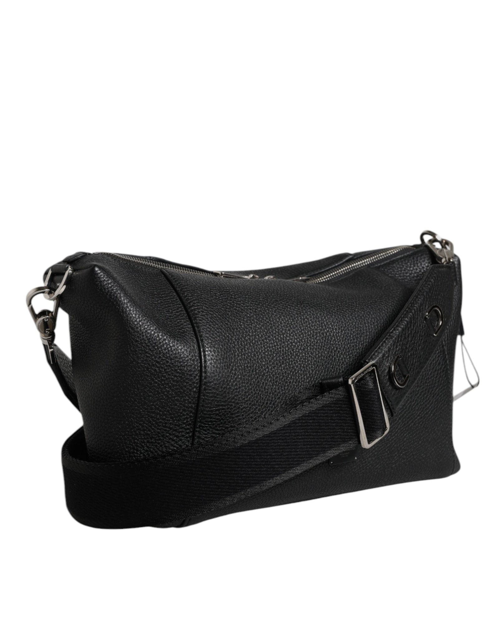 Svart läder axel-/kropps-väska med logoplack
