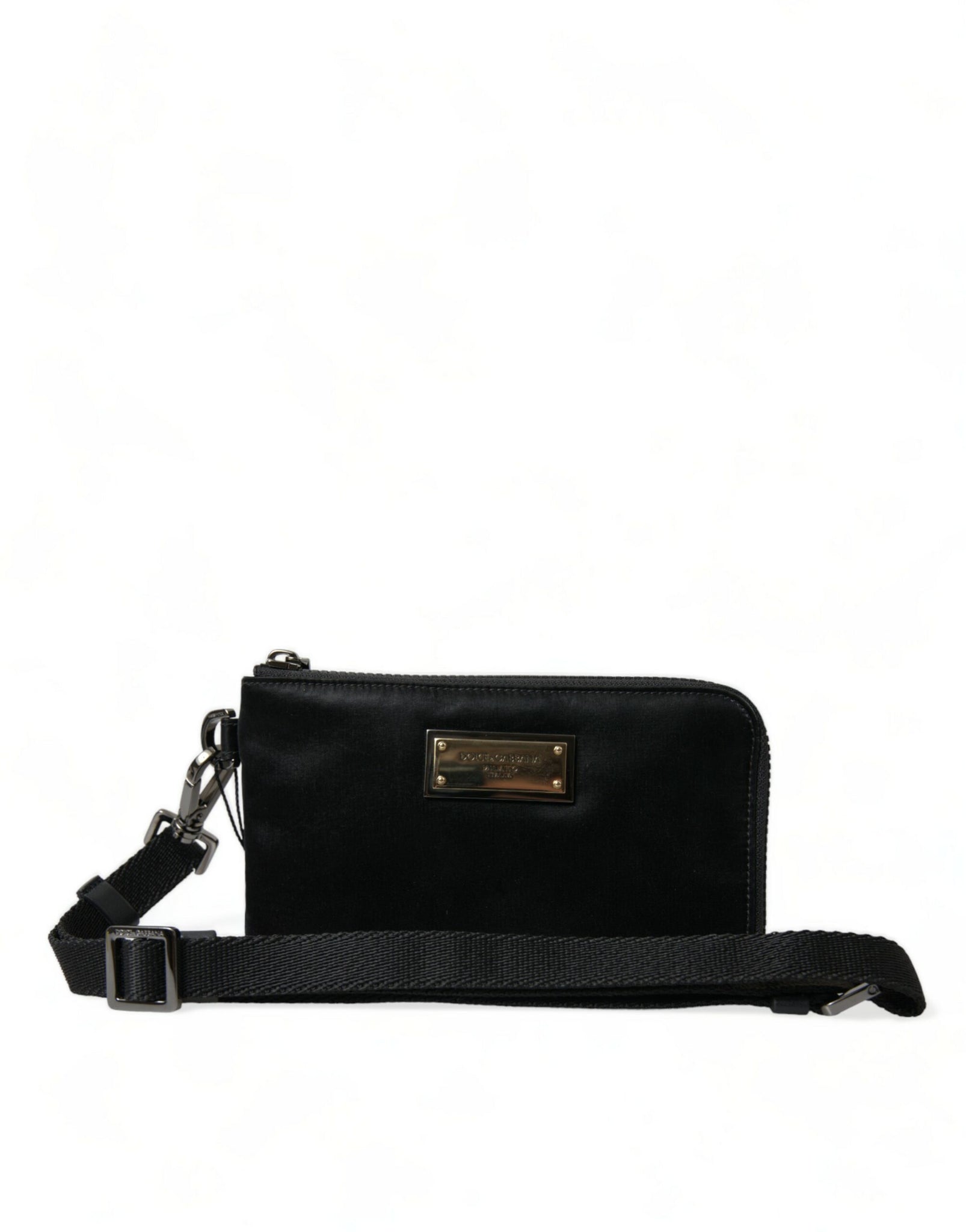 Svart nylonlogotypplack med nyckelring och kuvertväska
