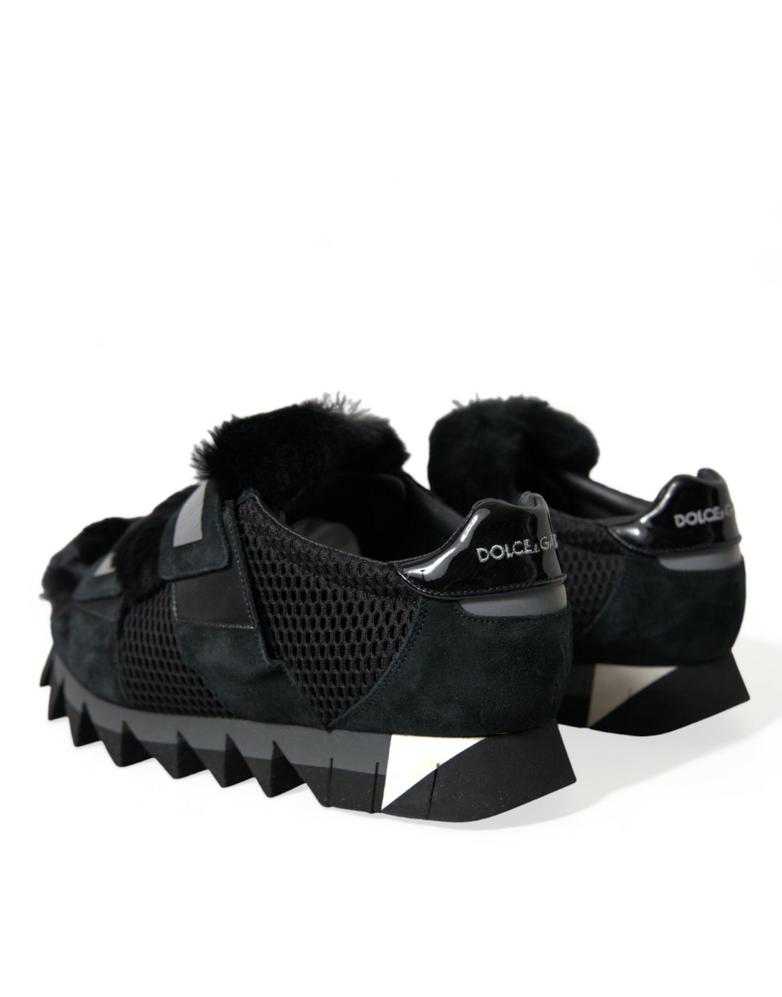 Gorgeous brand new with tags, 100% Authentic Dolce & Gabbana fur-embellished suede & mesh black platform sneakers.
