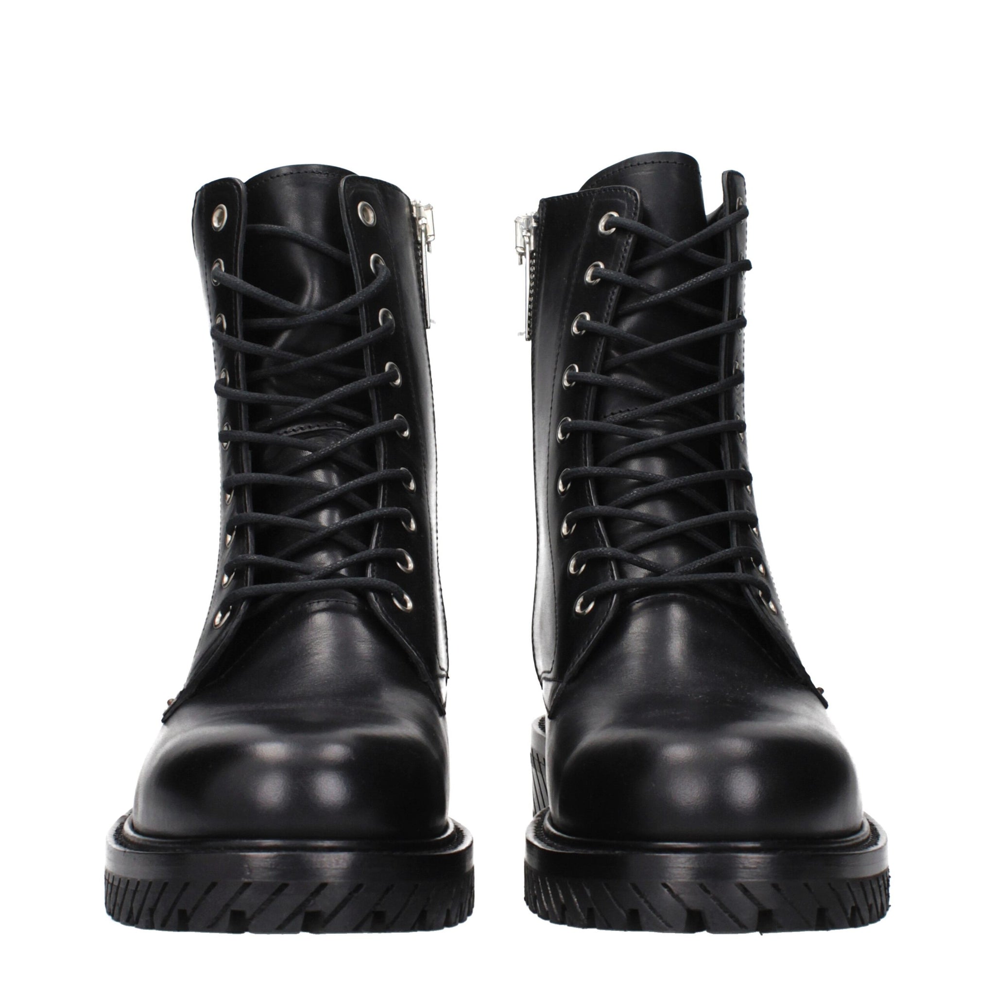 The product with MPN OMID025LEA0011010 and code F84974 leather in black is a ankle boots designed by Off-White. It has features like side logo, vintage effect, aged effect.
