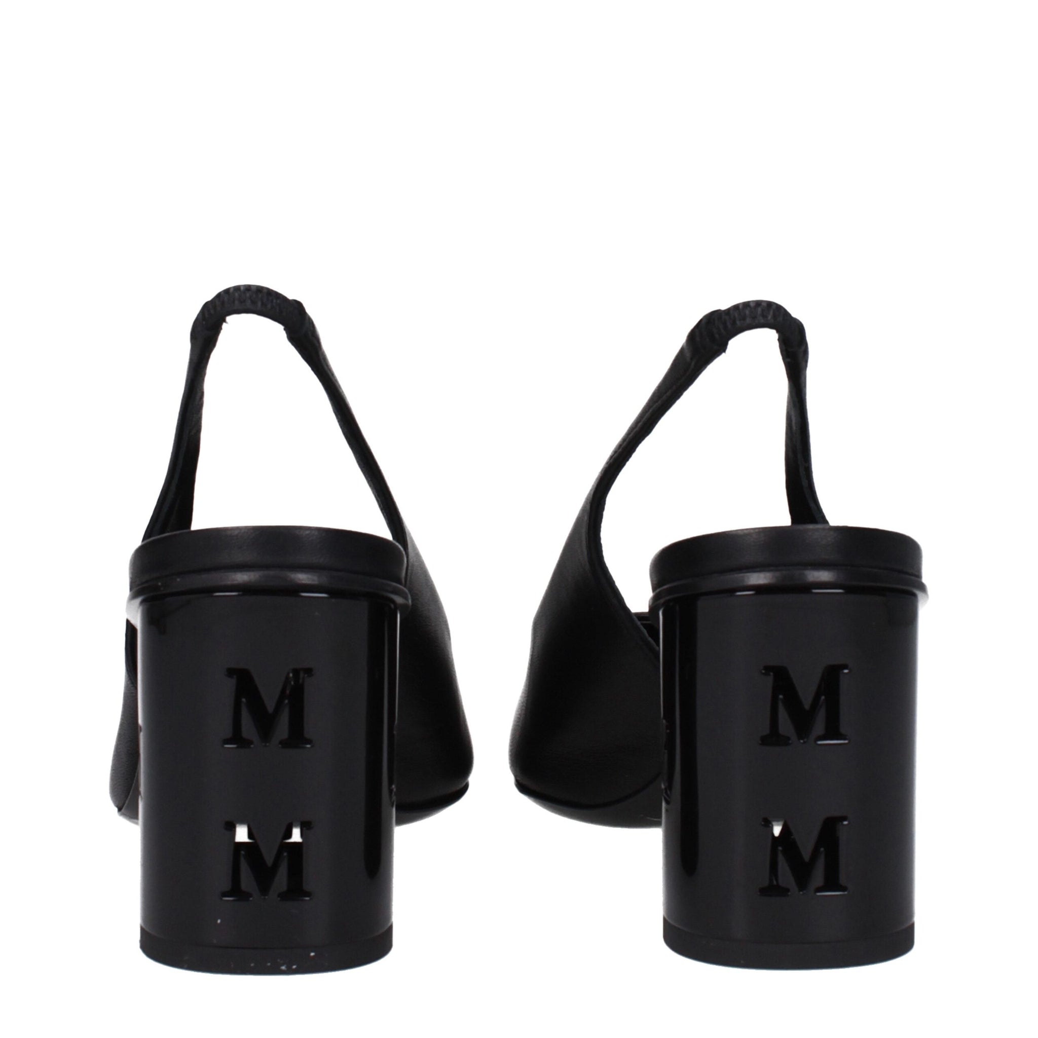Svarta pumps i läder med hög klack och logotypdetaljer
