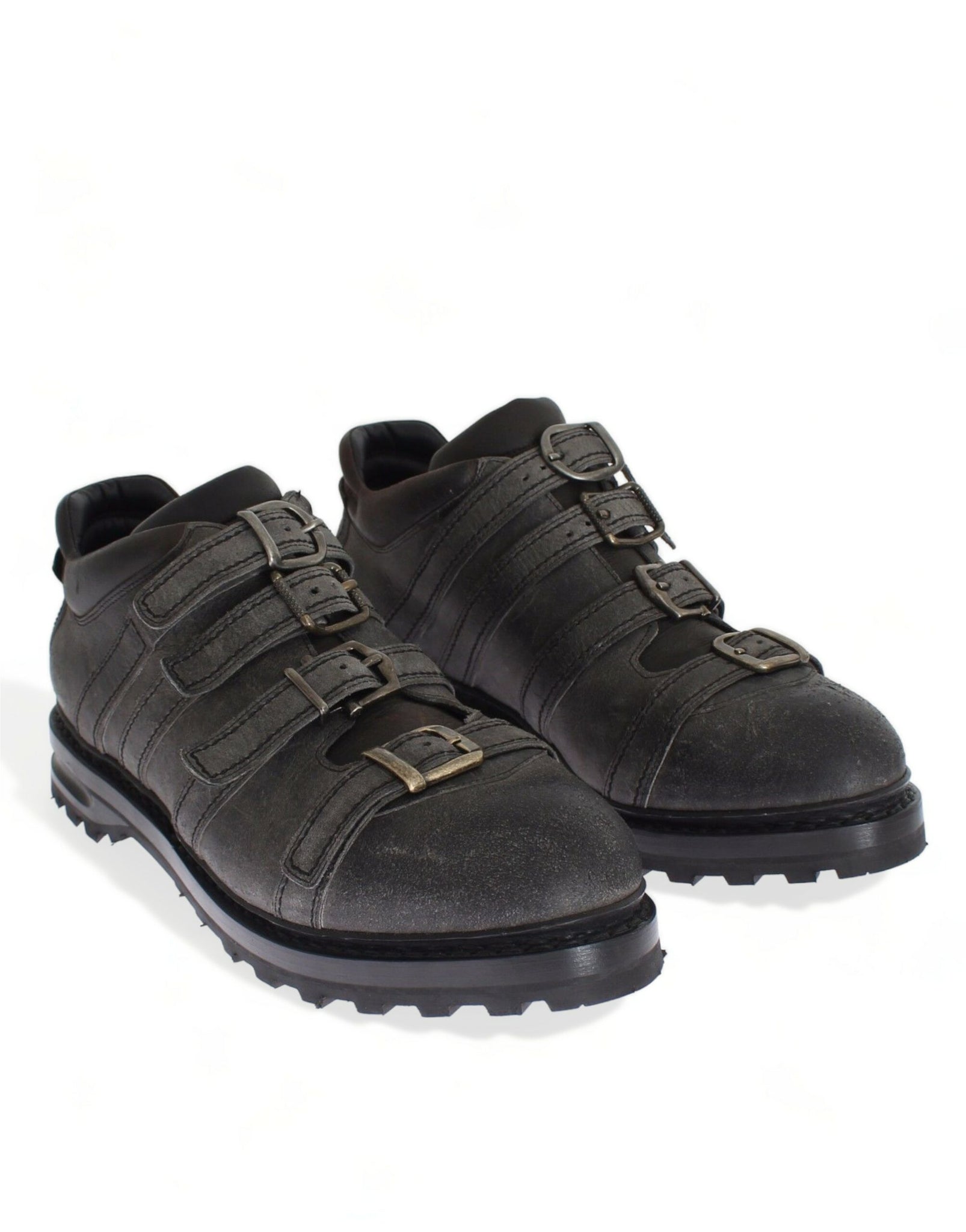 Gray Leather Ankle Strap Shoes Boots