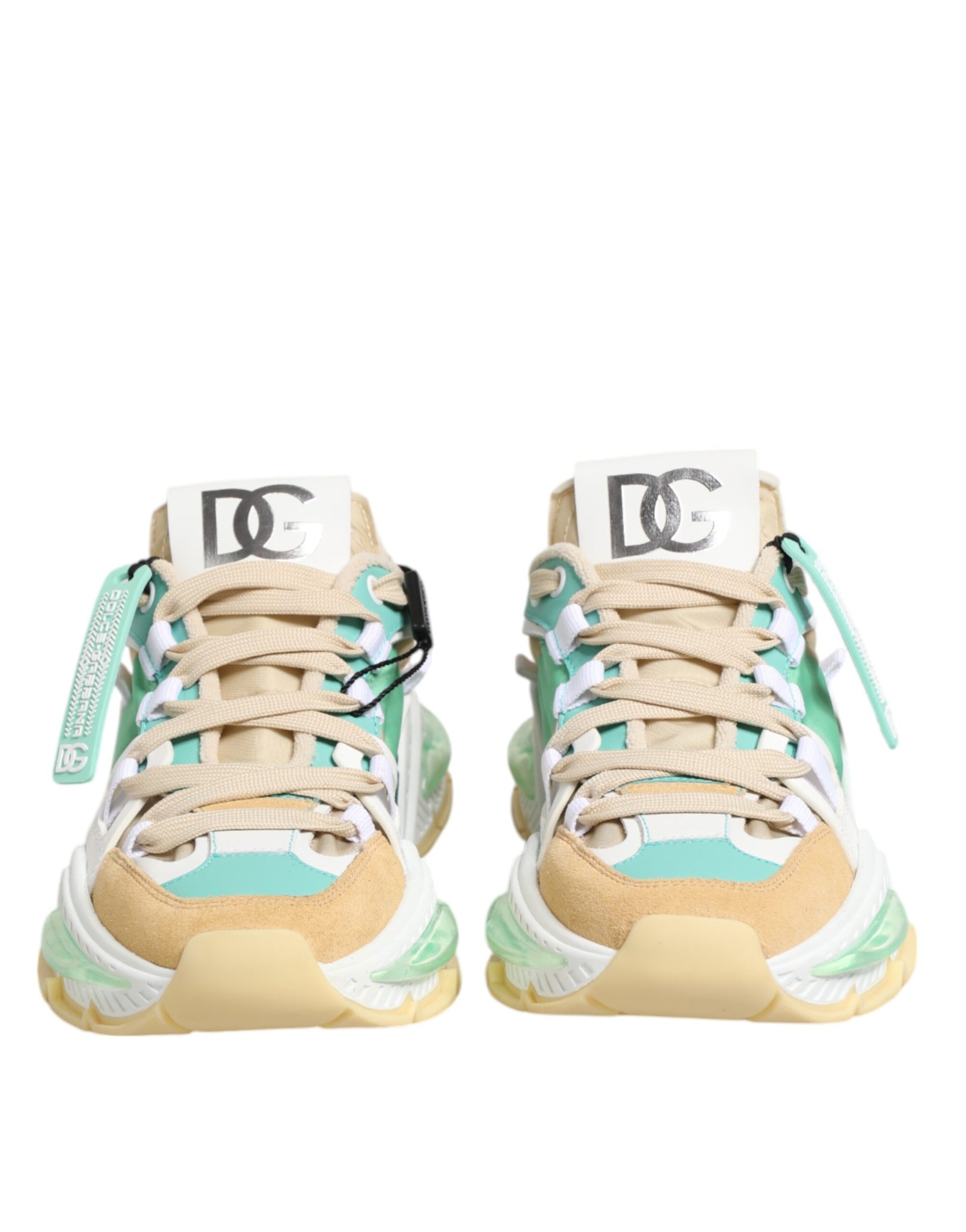 Gorgeous brand new with tags, 100% Authentic Dolce & Gabbana Mixed-material Airmaster sneakers: Nylon upper with rubber and calfskin details Calfskin heel cup with DG logo Flat laces Branded tongue Super-flex rubber bottom assembly with logo Branded rubber sole featuring a dynamic blend of grey, black, and pink tones. These sneakers fuse fashion and function, offering bold streetwear appeal with luxury craftsmanship.