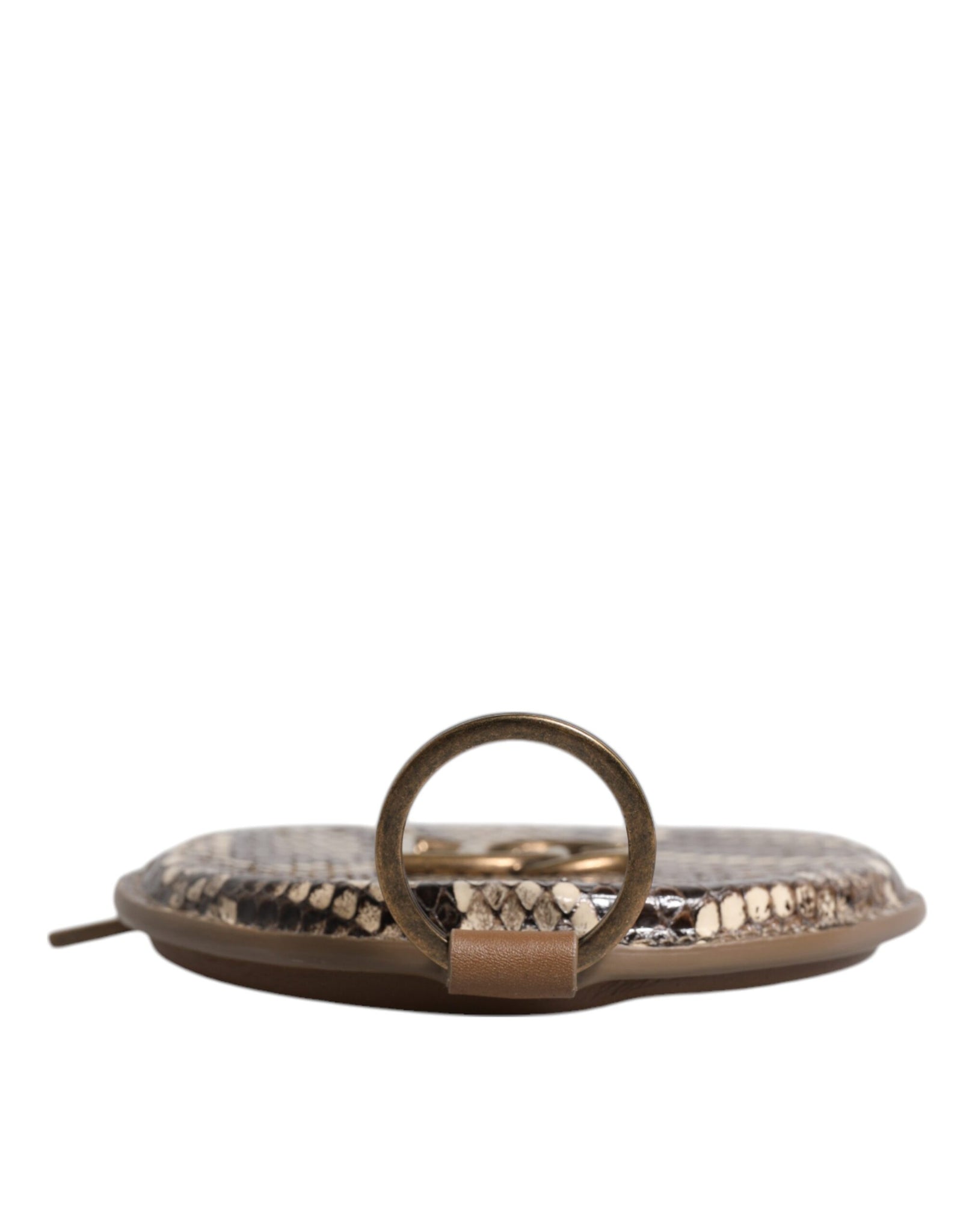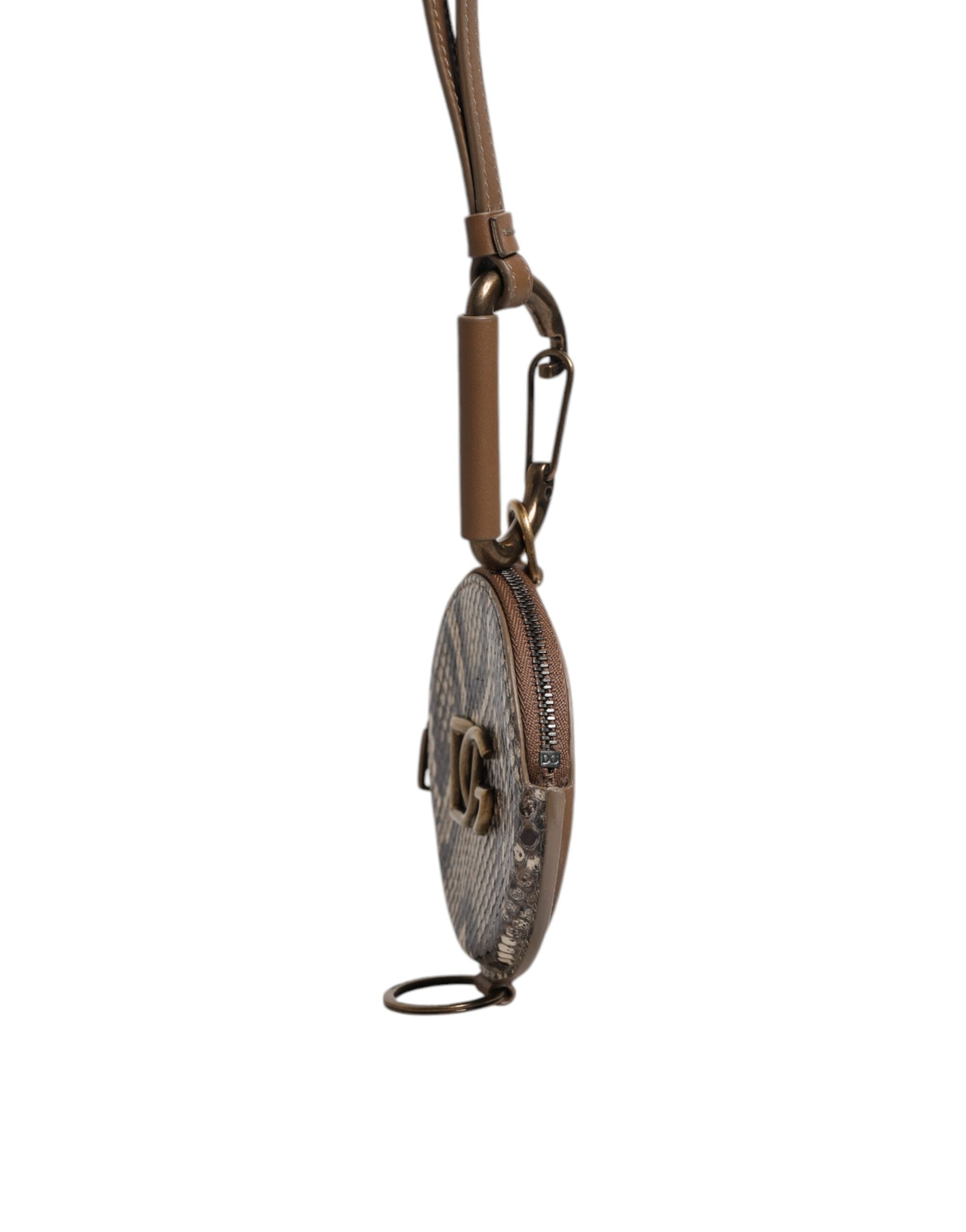 Brown Round Leather DG Logo Coin Purse Lanyard Wallet