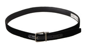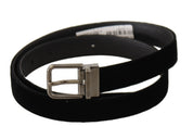 Svart klassisk sammetshögbälte med logogravyr och metallspänne