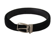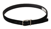Svart klassisk sammetshögbälte med silverfärgad metallspänne
