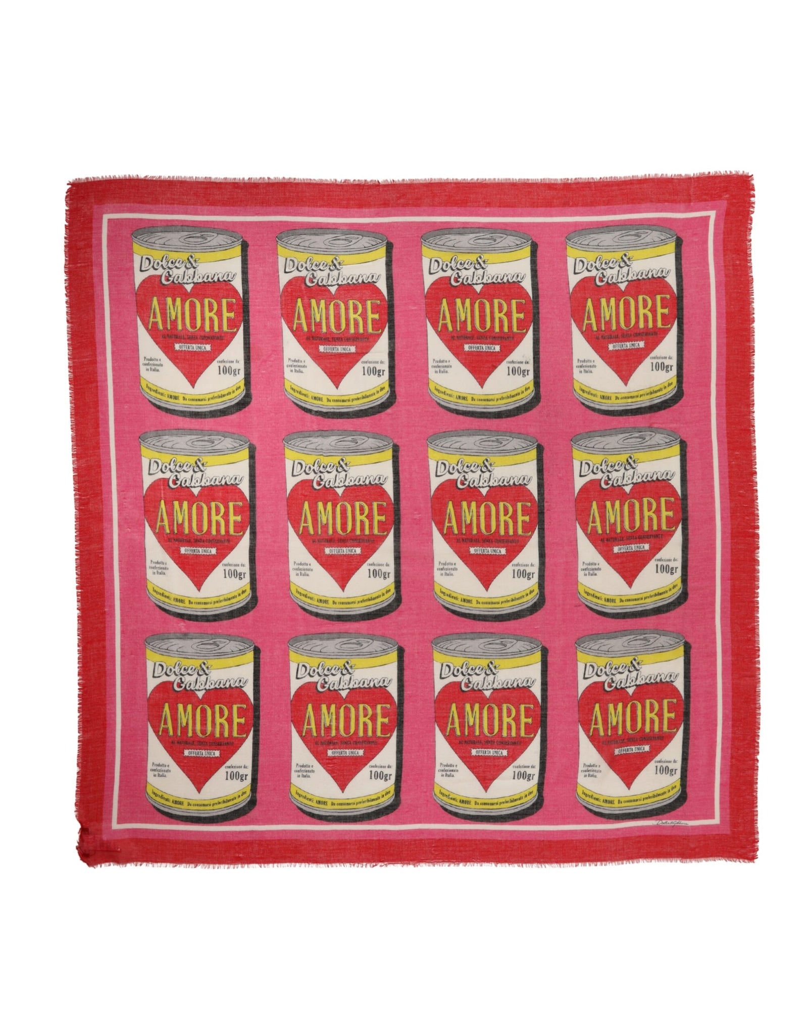 Pink DG Amore Print Neck Square Shawl 140cm x 140cm Scarf