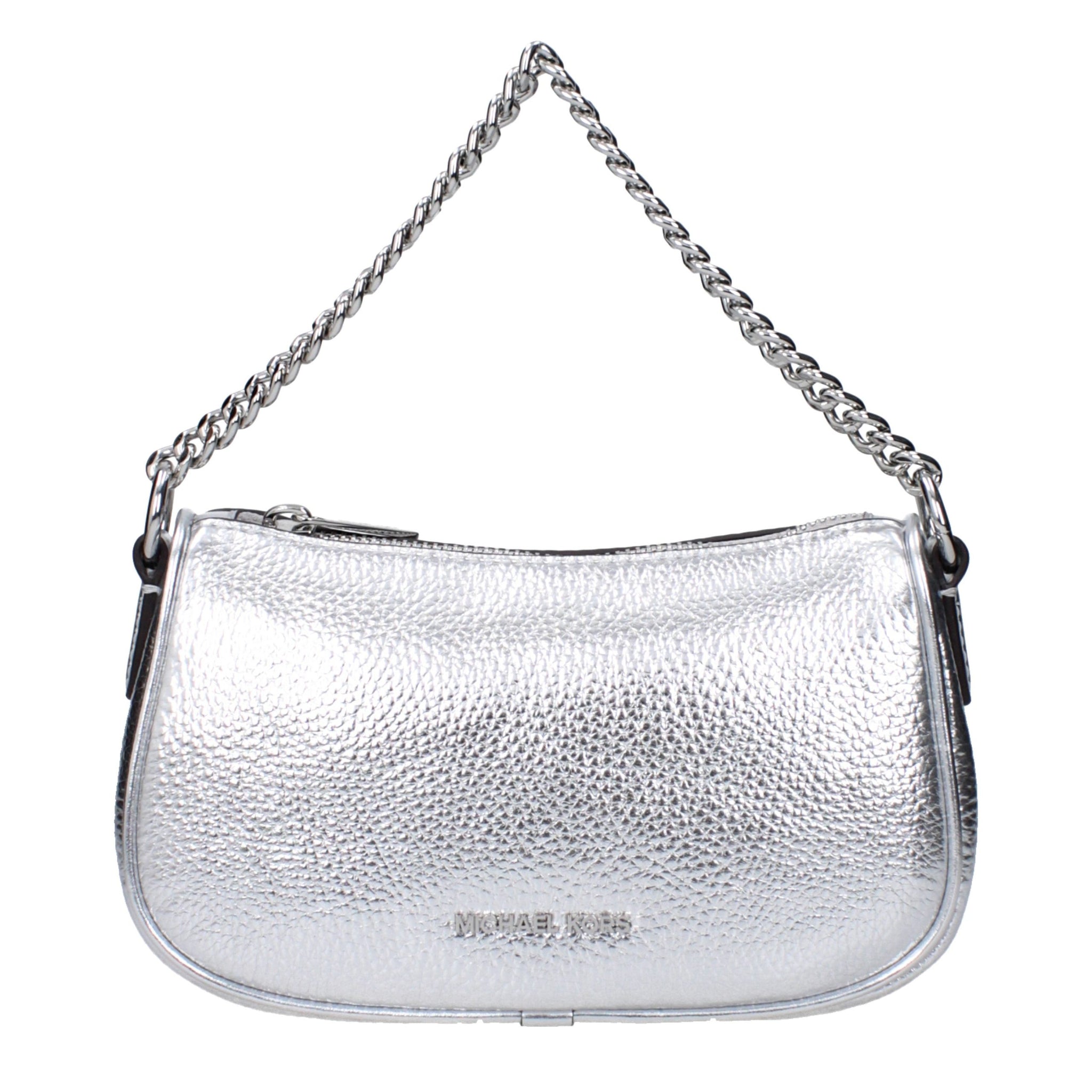 This elegant silver leather handbag from Michael Kors is a sophisticated accessory designed to complement your style with a touch of luxury. Featuring practical details like adjustable and removable shoulder straps, it offers versatility for any occasion.
