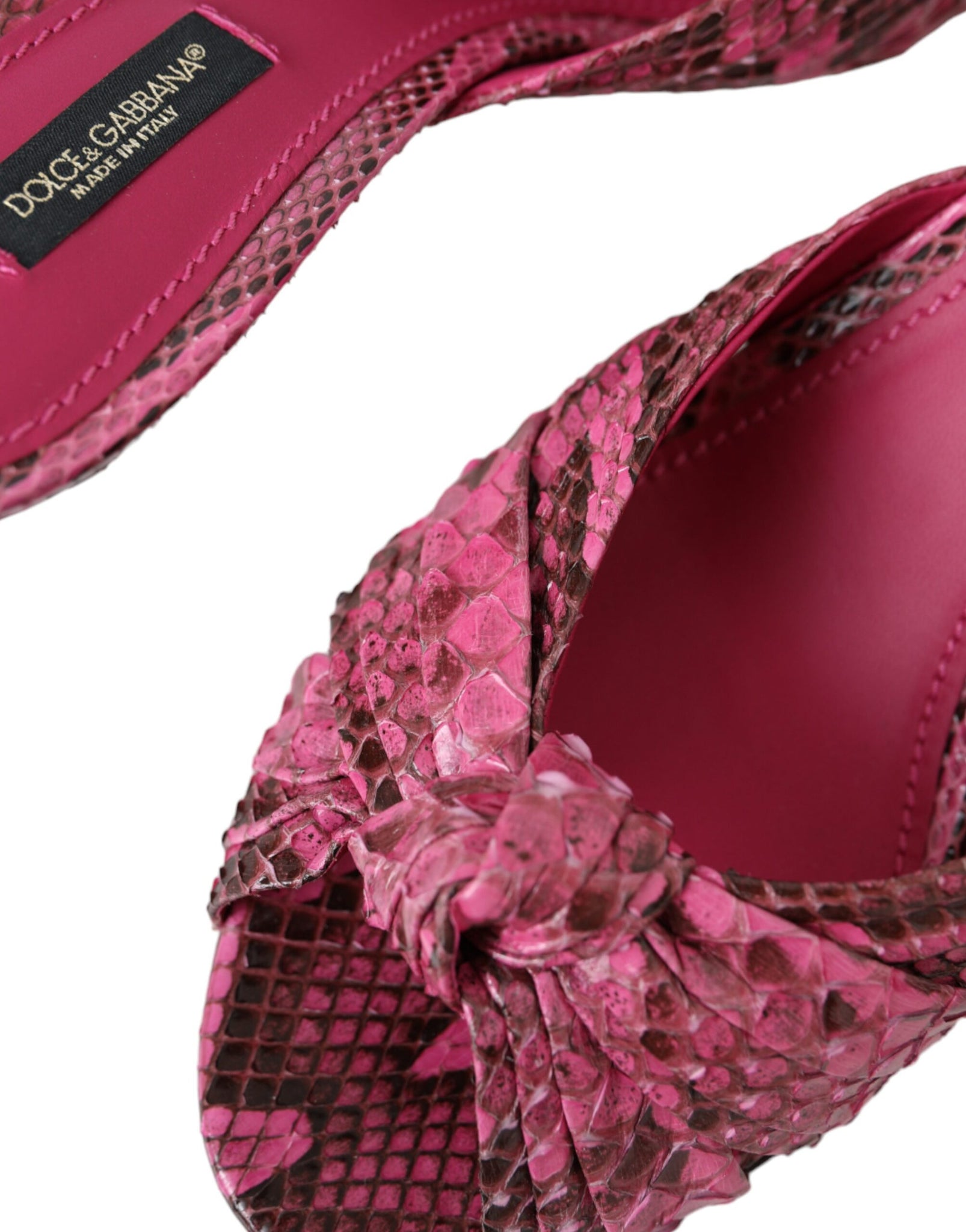 Pink Exotic Leather Kitten Heels Slides Shoes