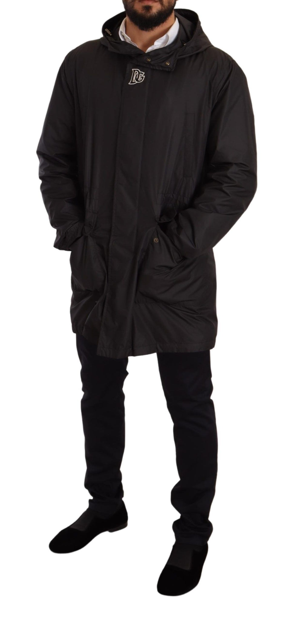 Black Hooded Mens Trench Coat Jacket