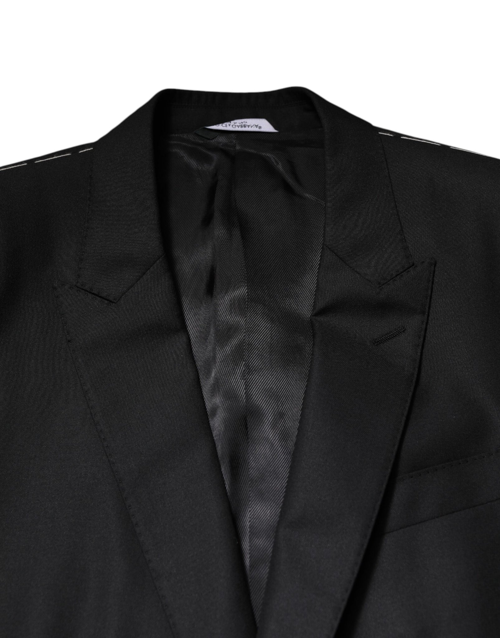 Gorgeous brand new, 100% Authentic Dolce & Gabbana black, 2 piece suit is crafted from a virgin wool and features a peak lapel, long sleeves, a chest pocket, side flap pockets and button cuffs.