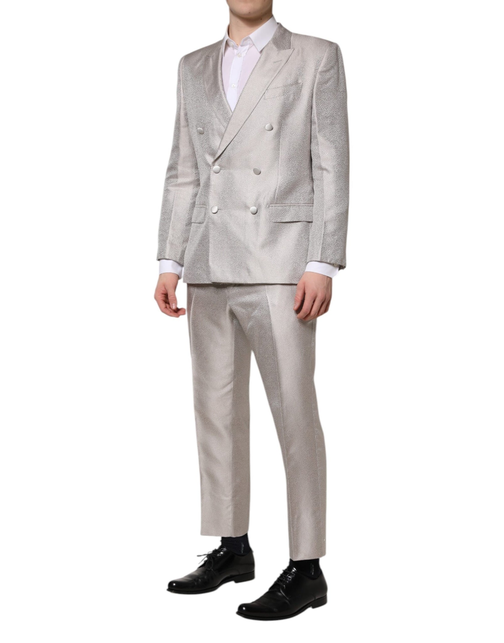 Light Gray Jacquard Silk Dotted 2 Piece Suit