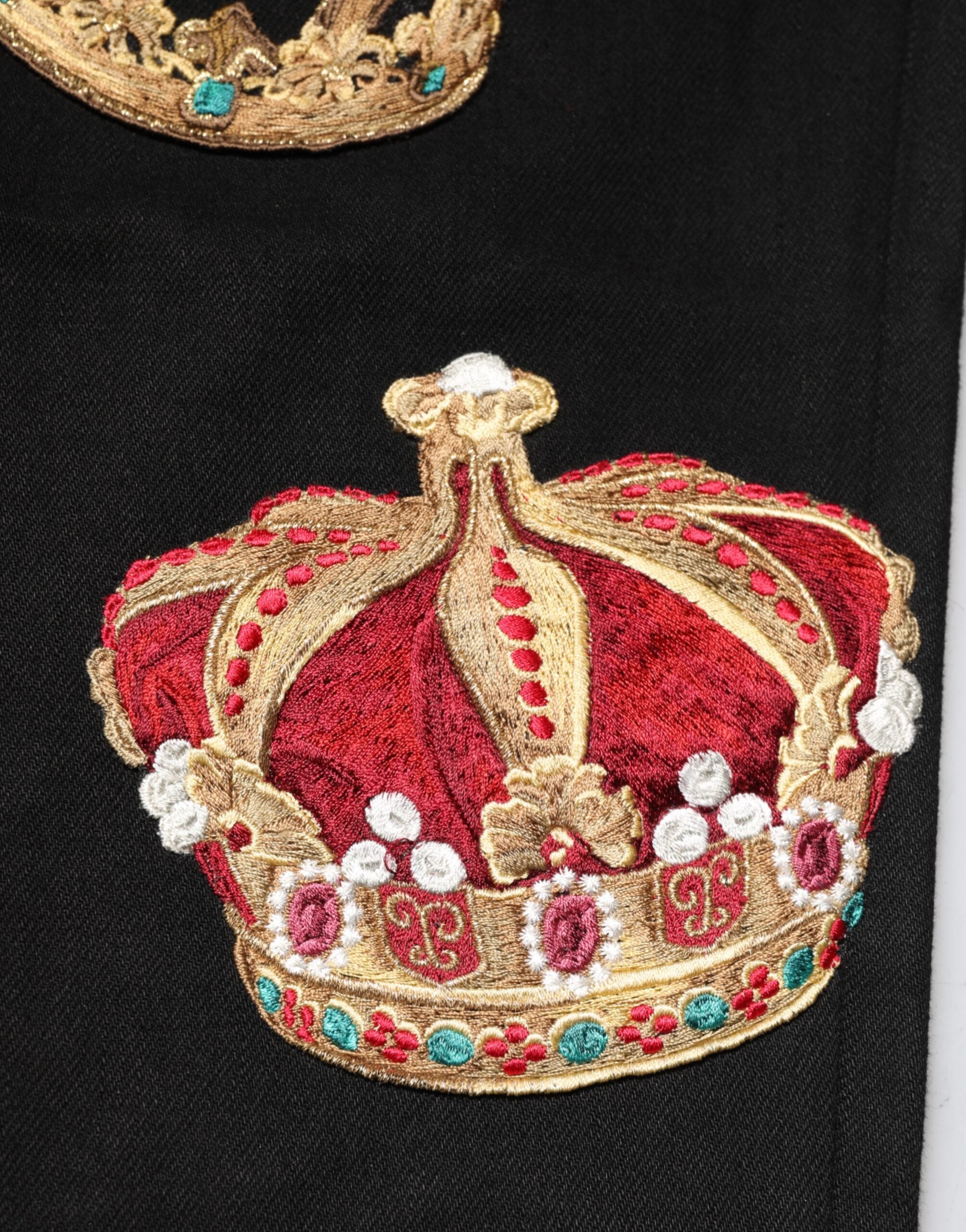 Gorgeous brand new, 100% Authentic Dolce & Gabbana black dress trousers, featuring an opulent Baroque Royal design. Meticulously crafted in Italy, these trousers exude sophistication and regal flair—perfect for upscale events or refined evening wear.