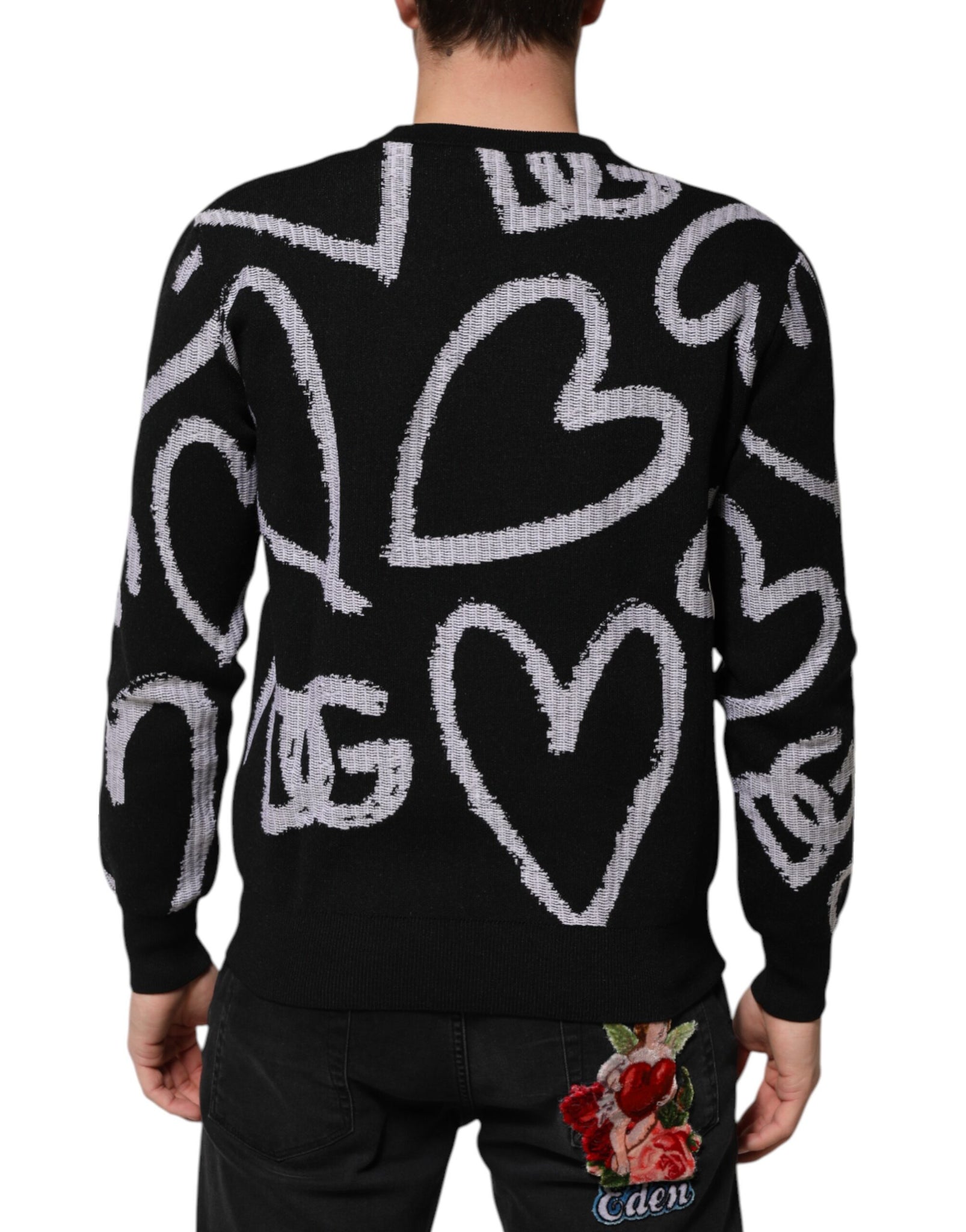 Gorgeous brand new, 100% Authentic Dolce & Gabbana pullover sweater. This striking black sweater features a bold heart print design, blending romantic flair with modern edge. Crafted in Italy from a luxurious blend of nylon and wool, it offers warmth, comfort, and standout style in one sleek silhouette. Ribbed cuffs, collar, and hem complete the look with a refined finish.