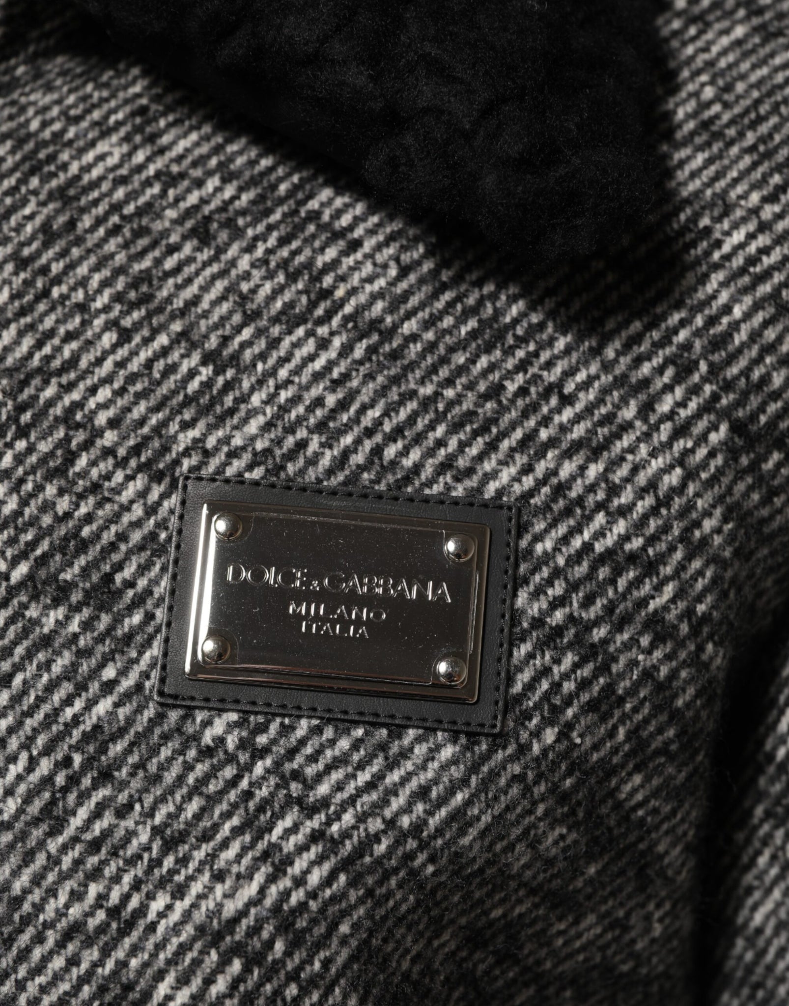 Gorgeous brand new, 100% Authentic Dolce & Gabbana men’s bomber jacket. Expertly crafted in Italy, this jacket features a timeless gray herringbone wool pattern, accented with a luxurious black shearling collar. Designed with a front zip closure, ribbed cuffs and hem, and spacious flap pockets, it perfectly blends classic tailoring with contemporary streetwear style.