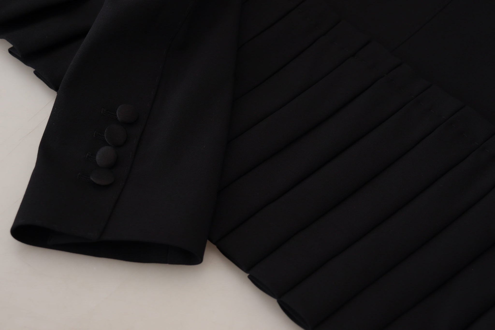 Gorgeous brand new with tags, 100% Authentic Dolce & Gabbana black single-breasted blazer with wide, peaked lapels and pleats, made from smooth stretch wool.