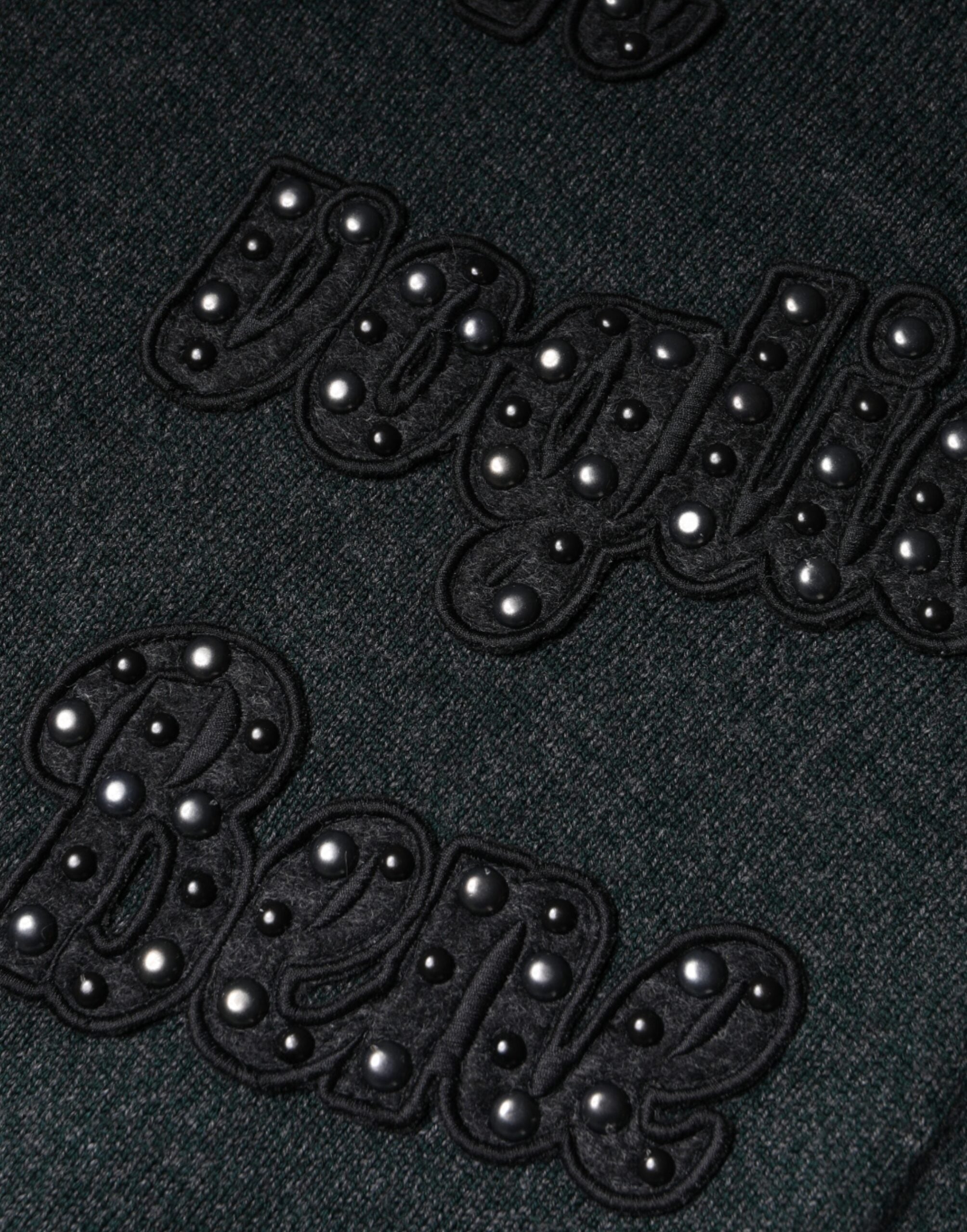 Gray Embellished Crew Neck Pullover Sweater