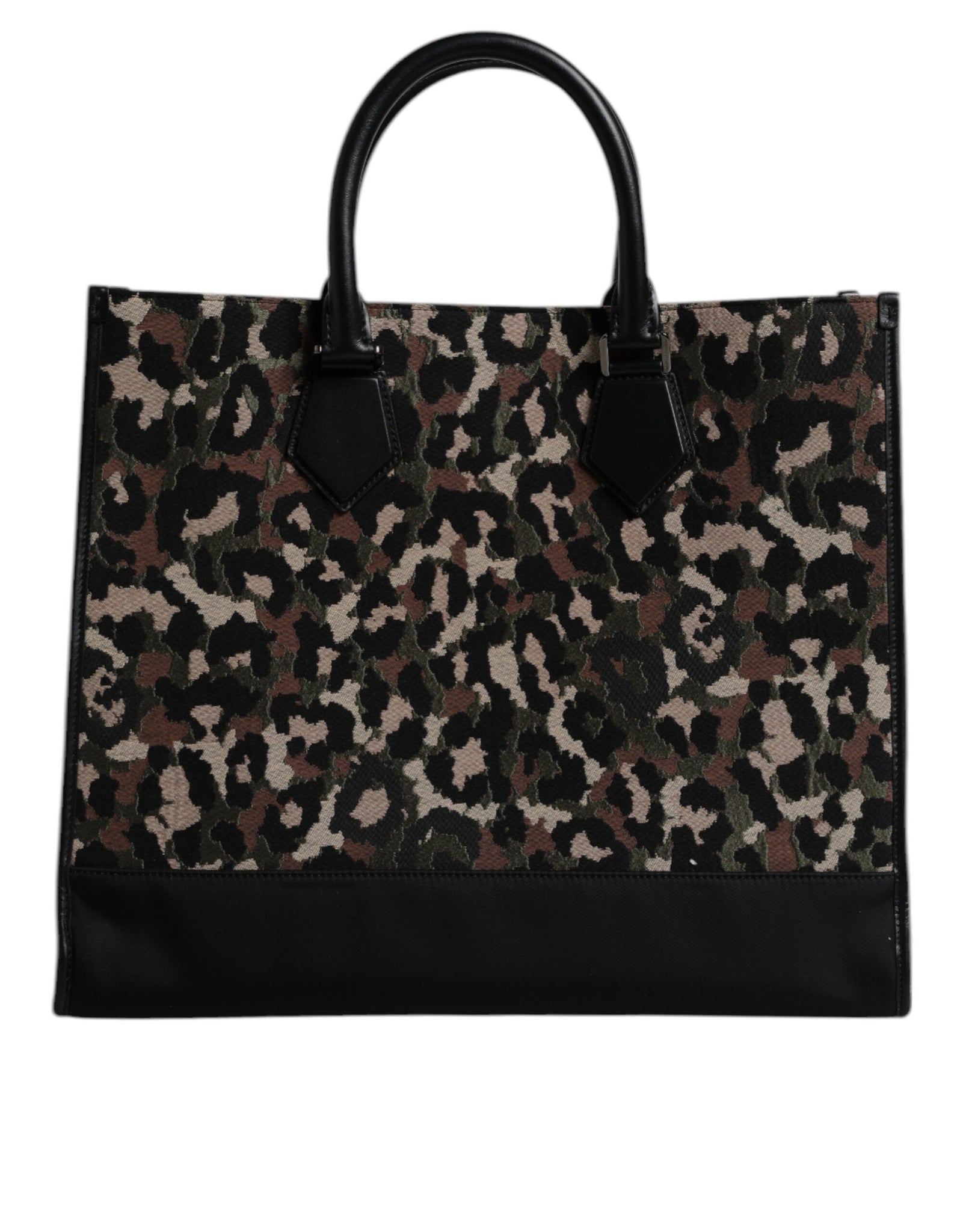 Gorgeous brand new with tags 100% Authentic Dolce & Gabbana brown tote features a signature leopard print, round top handles with gold-tone and silver-tone stud detailing and a top magnetic closure.