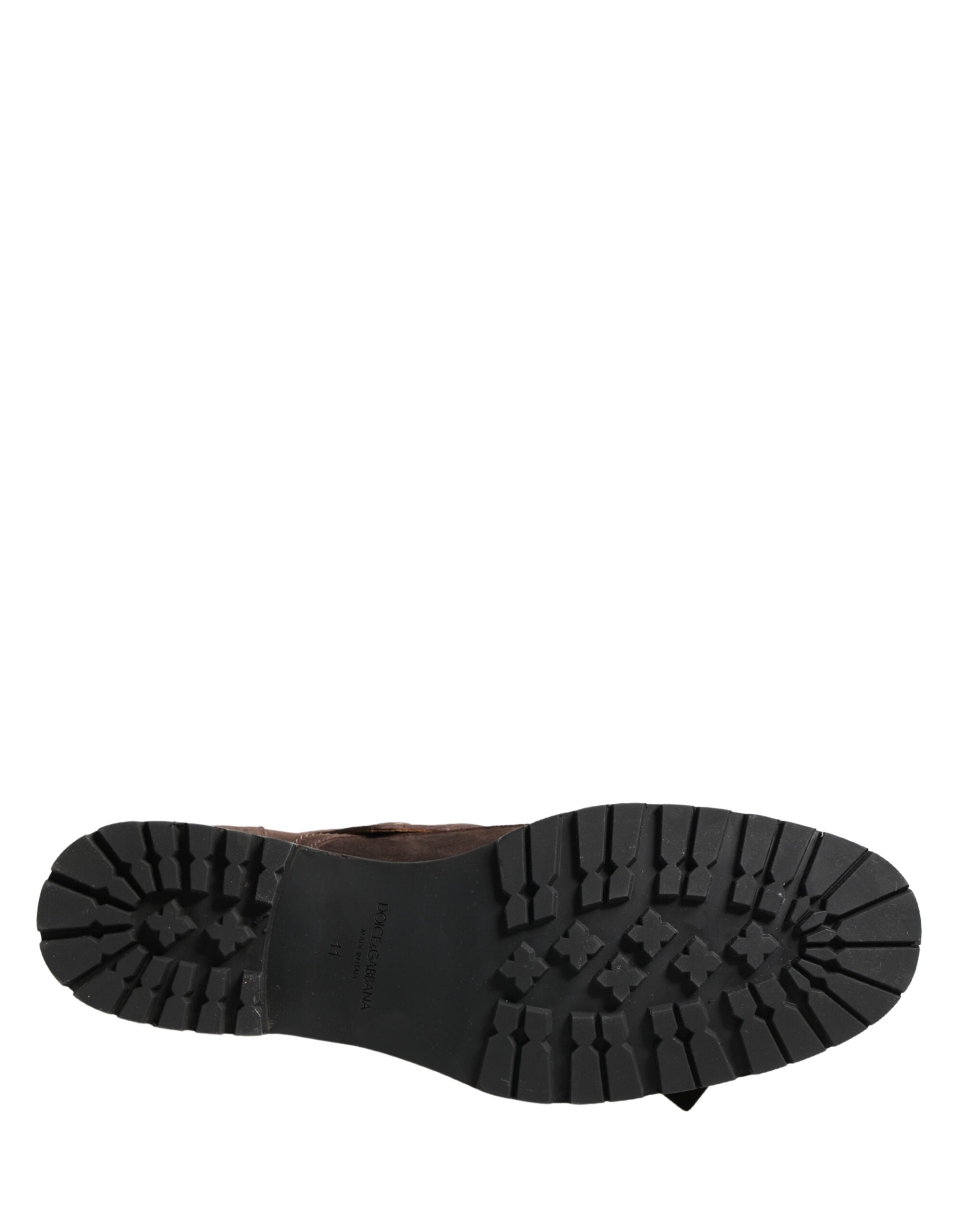 Dessa helt fantastiska ankelboots från Dolce & Gabbana är tillverkade av fyllig brun mocka med en robust men ändå raffinerad silhuett. De är designade med lager på lager-remdetaljer och dubbla spännen, vilket gör dem till ett mångsidigt lyxplagg för både elegant och avslappnad klädsel.
